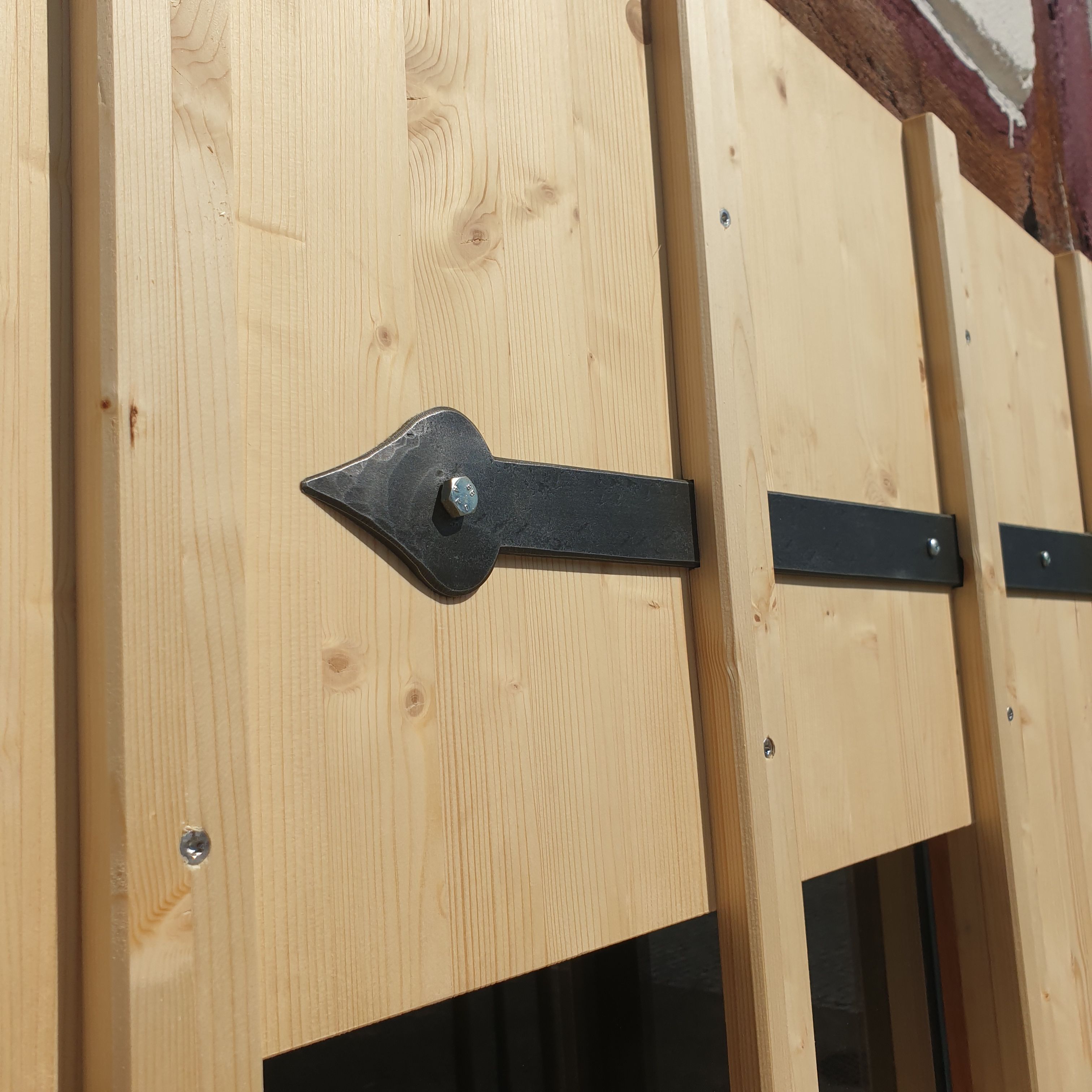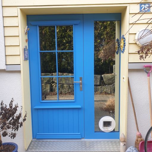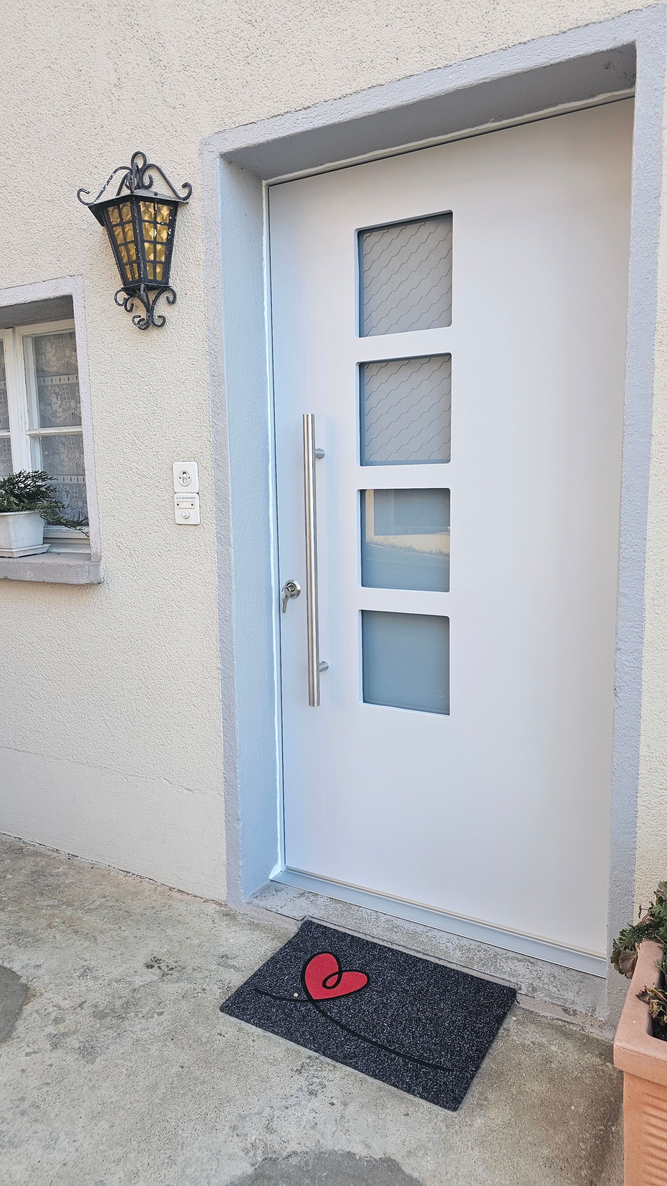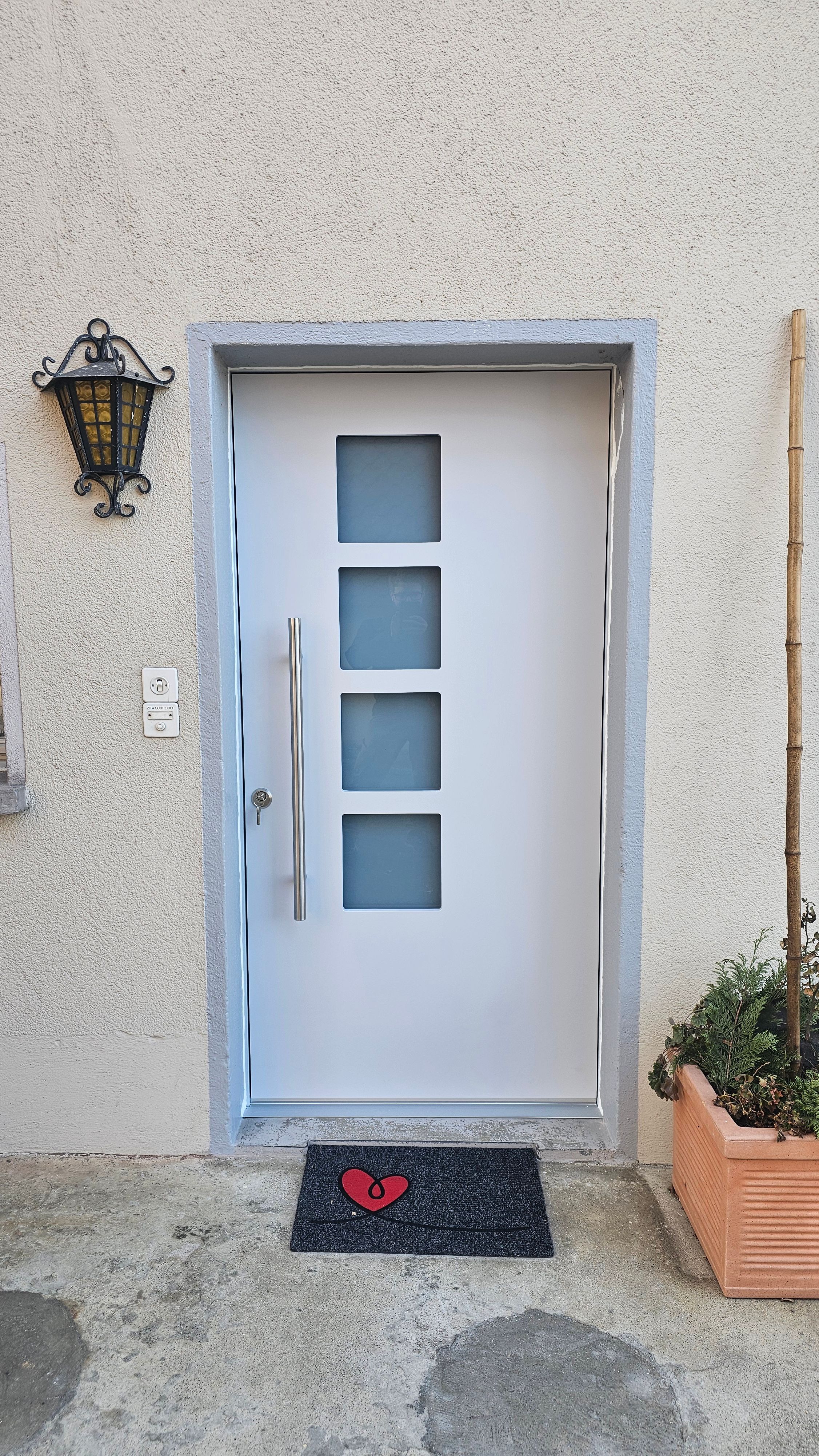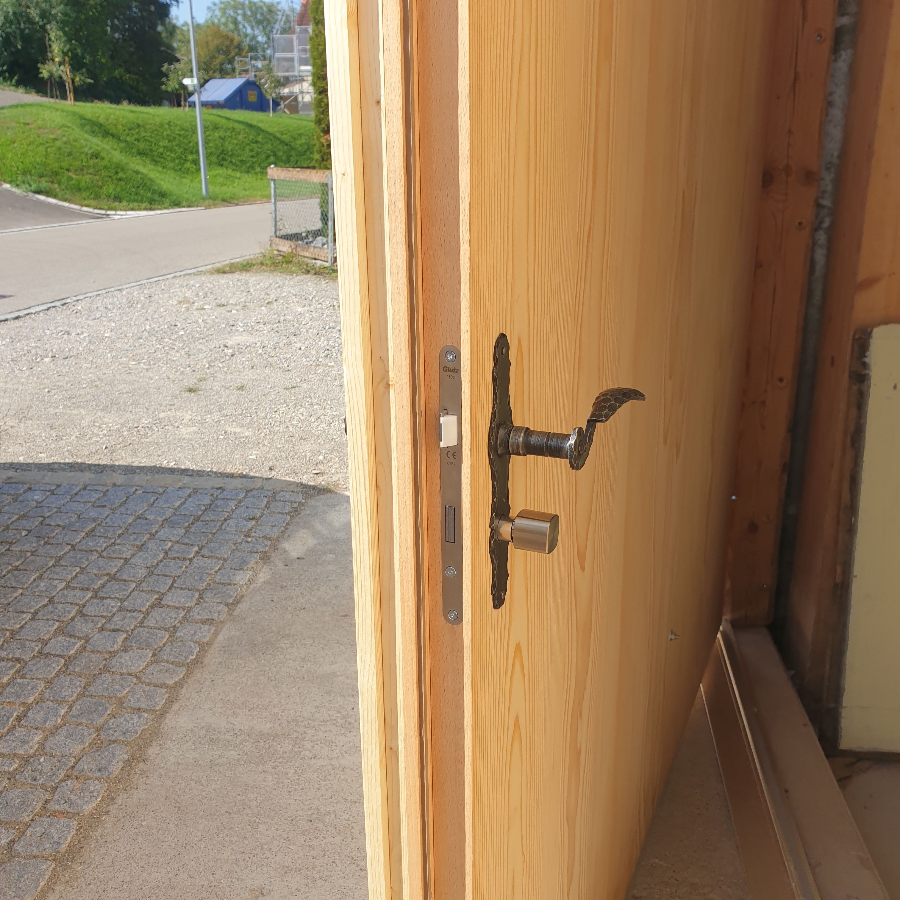 Wir wollten den Stil der originalen Haustüre bewahren und fertigten ein identisch aussehendes Duplikat für die neue Türe an. Um das Eindringen von Luft und Wasser zu verhindern, wurde die neue Türe mit zwei Dichtungsebenen ausgestattet. Den Türrohling sowie sämtliche Bearbeitungen haben wir vollständig in Eigenleistung hergestellt.